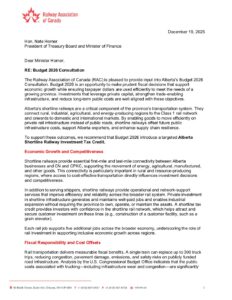 RAC – Alberta pre-budget – Shortline railway tax credit